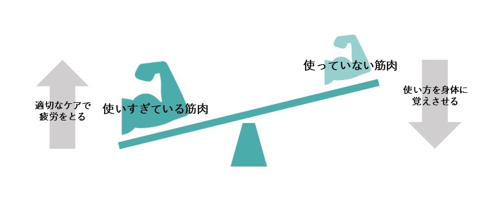 弱い筋肉を鍛えようにも、日頃使いすぎている筋肉が邪魔をしてしまいます。